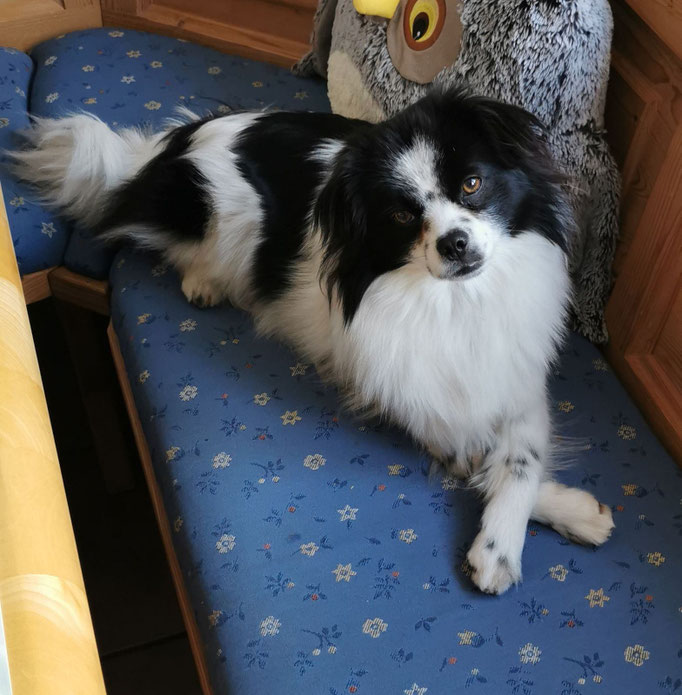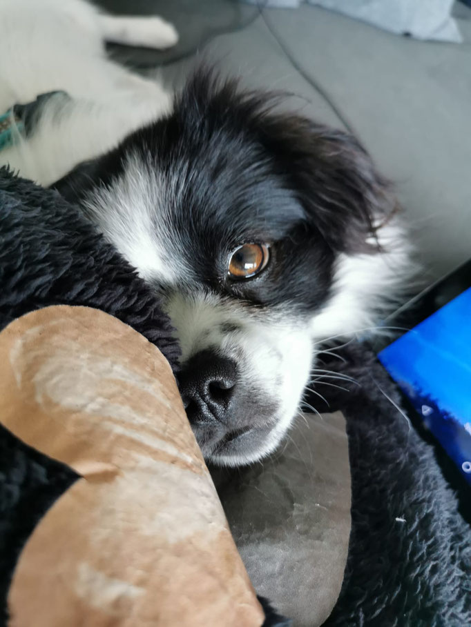 Bei Korrekturen geht er noch gerne in die Diskussion, mit konsequenter und ruhiger Führung, ist er aber ein sehr folgsamer kleiner Gefährte. Auf seiner Pflegestelle fährt er regelmäßig mit ins Büro und geniest dort die volle Aufmerksamkeit der Mitarbeiter und liegt am liebsten bei seinem Pflegefrauchen auf dem Schoß und schläft während sie arbeitet.