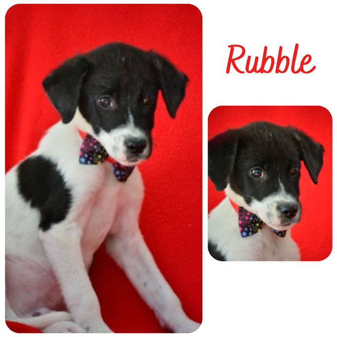 Rubble ist, wie sein Bruder Barney, ein typischer Junghund. Er ist seinem Alter entsprechend neugierig, aktiv, verspielt und möchte gerne die Welt entdecken. Rubbel versteht sich gut mit seinen Artgenossen und genießt die Nähe der Menschen.